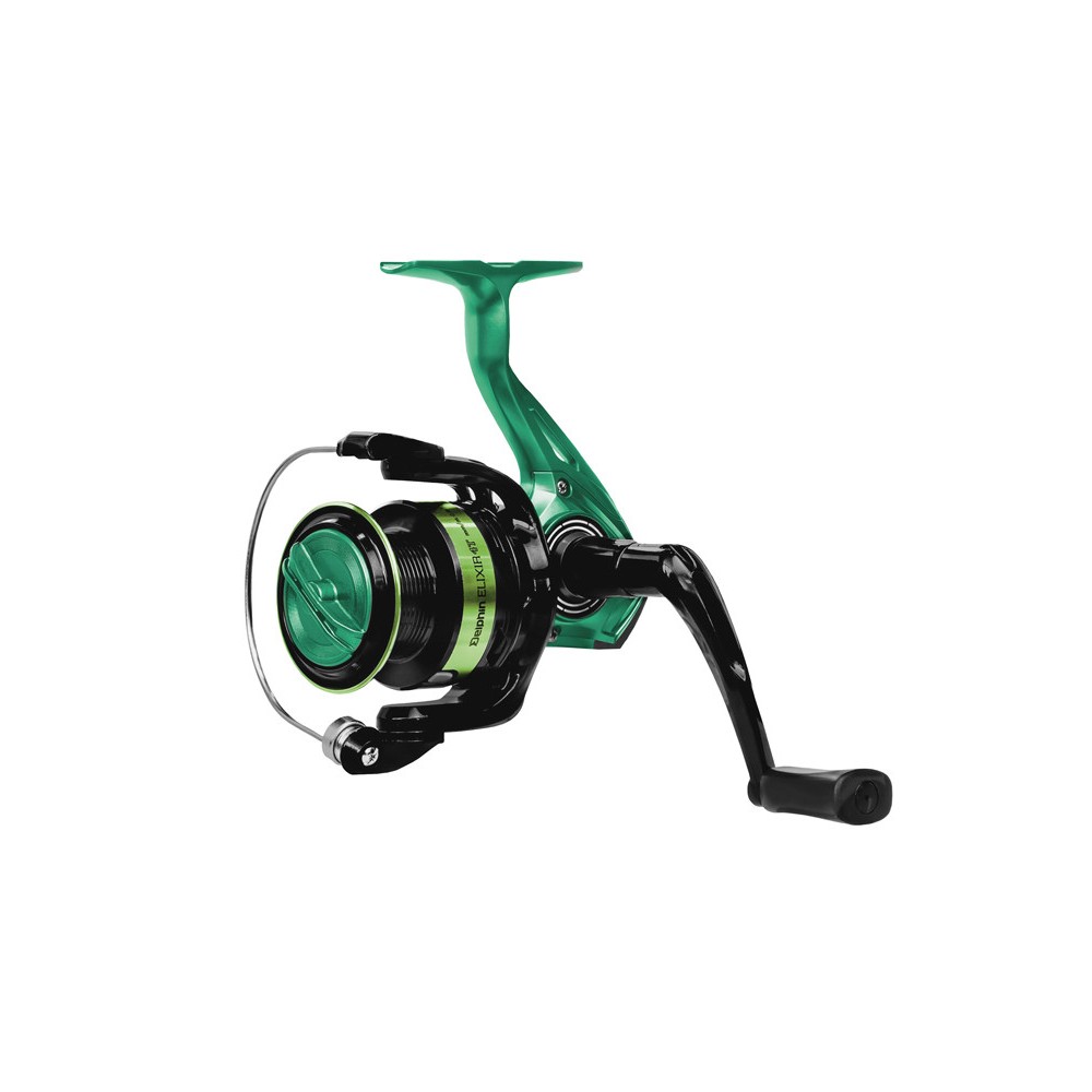 Neįprasto dizaino ritė su priekiniu stabdžiu už prieinamą kainą. Tai „Delphin ELIXIR“, kuri savo žaliai juodu dizainu išsiskiria iš kompaktiškų ričių asortimento, tinkama spiningavimui ar žvejybai su plūdinėmis.