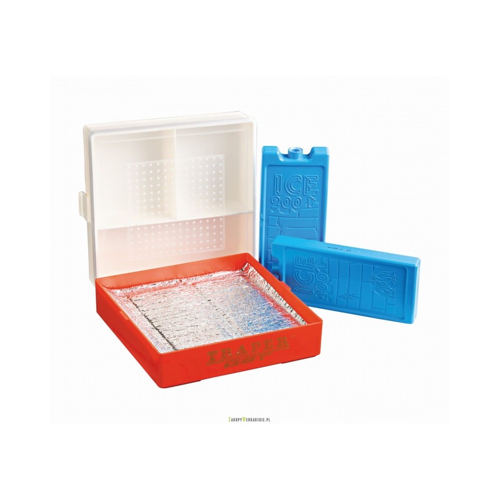 Traper masalų dežutė su šaldymo funkcija - patogus indas susidėti masalus, kurie išliks gaivūs saulėtą dieną. Apačioje dedasi šaldymo elementai, kuriuos reikalui esant galima pakeisti (komplekte yra 2 vnt). Pagaminta iš tvirto plastiko. Matmenys: 19cm x 19cm x 8,5 cm (masalams skirta: 18cmX18cmX3cm, viso 3 skyriai). Spalva - balta.