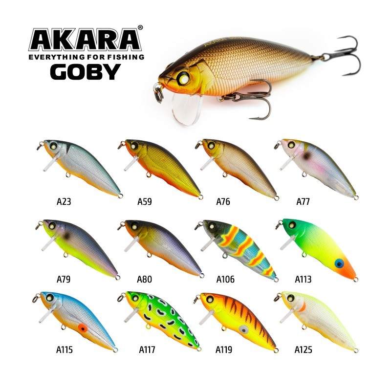 Vobleris Akara Goby 65F yra paviršinis vobleris, turintis ryškų judesio žaidimą. Dėl voblerio mažo nėrimo gylio (0 - 0,2 m) jis gali praplaukti per apaugusius ir sutrumpėjusius vandens telkinių ruožus, negilias įlankas ir plyšius. Dėl kompaktiškos formos jis pasižymi puikiomis skrydžio savybėmis, taip pat yra triukšmingas.